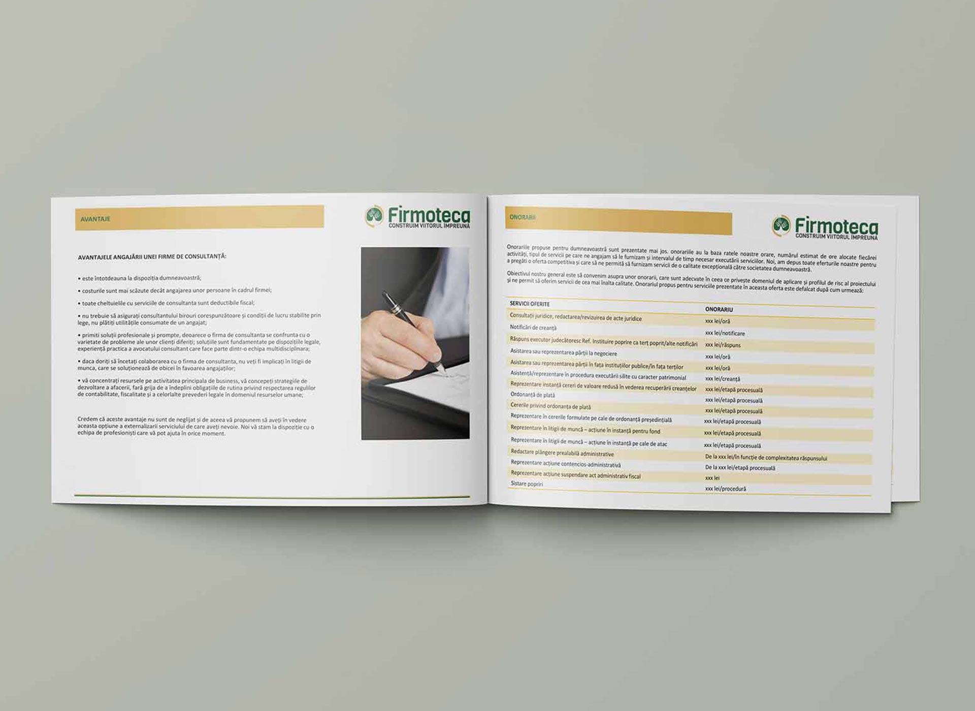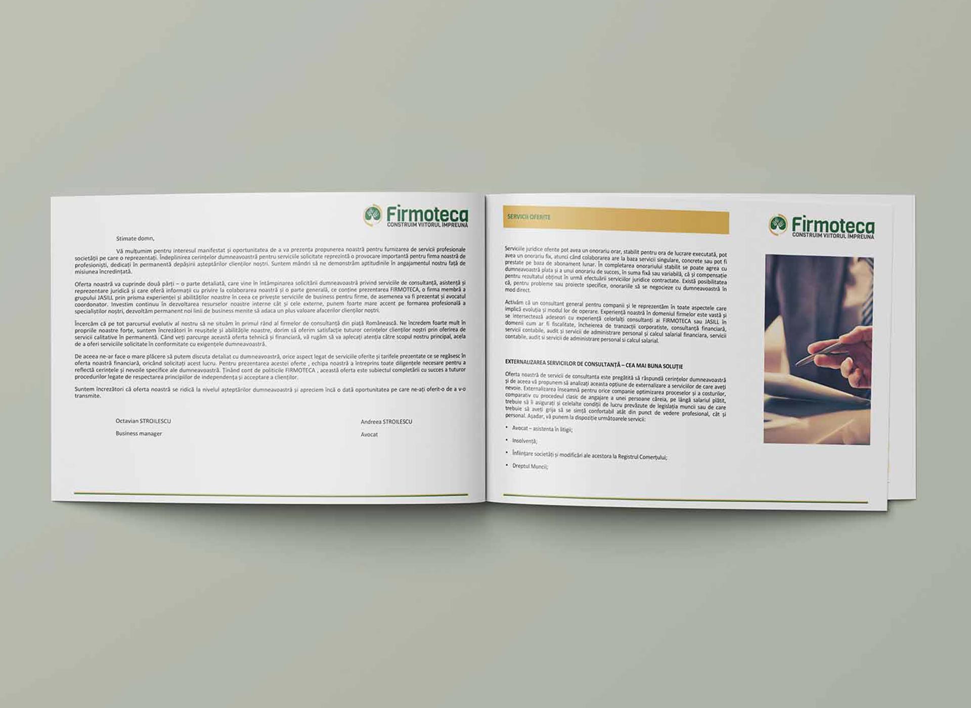 Materialele de brand nu sunt doar obiecte — sunt extensii tangibile ale identității vizuale, punți care leagă un concept de realitate și transformă o viziune într-o experiență palpabilă. Am creat un ecosistem complet pentru Firmoteca: cărți de vizită, foi cu antet, plicuri, mape de prezentare și un manual de identitate, toate gândite să reflecte coerența. brandului. Aceste livrabile nu doar comunică; ele întruchipează esența brandului, oferind clienților o primă impresie memorabilă și un sentiment de încredere care durează. Fiecare element este o piesă strategică, menită să ducă imaginea afacerii la un nivel superior.